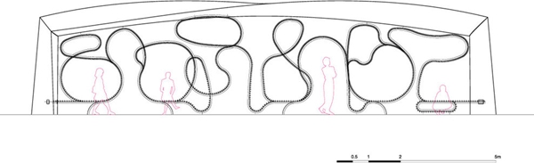 這個(gè)長(zhǎng)椅被限制在一座不銹鋼的框架結(jié)構(gòu)中,切面看上去如同隨意的卷曲線條,一期工程的長(zhǎng)凳曲線總長(zhǎng)度為620米,可容納800名成年人就坐。木條長(zhǎng)椅上被設(shè)計(jì)了豐富的色彩,粉紅、黃色、橙色。在東部,紫色和藍(lán)色在西部,表達(dá)了自然的色彩和色調(diào)的變化。